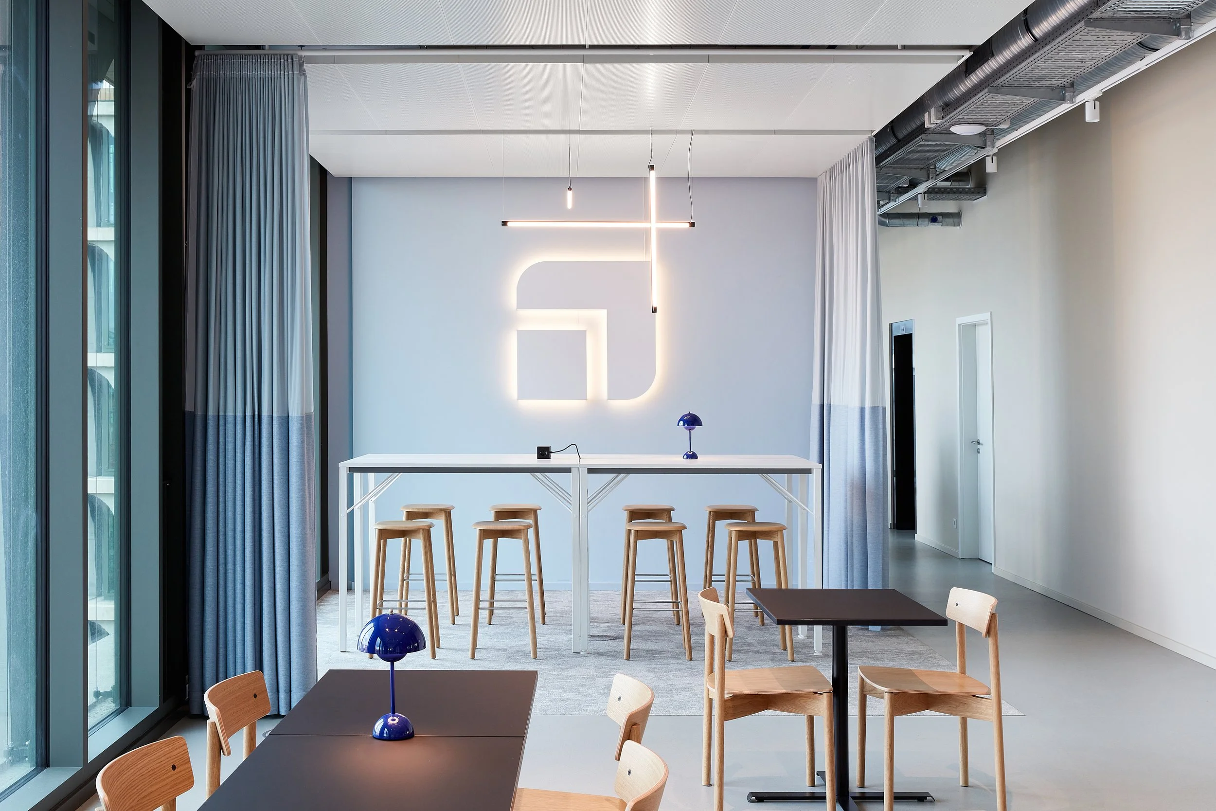 Spanning three floors with a total of 1,650 m², the office provides space for 108 employees – with 550 m² and 48 workstations per floor. The office design reflects the culture of this young and rapidly growing company. Open, flexible workspaces promote collaboration and agility.